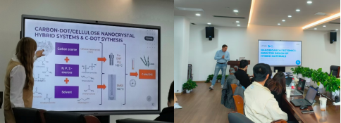 与会师生围绕以可再生碳源等天然聚合物为原料合成碳点材料、纳米纤维素等高值化低碳材料的技术路径,及其在清洁能源开发、污染治理等碳中和关联领域的可持续应用主题展开热烈讨论。本次论坛既为师生搭建了多学科融合交叉的学术交流桥梁,拓宽了其在双碳目标下的研究视野,也为我院深化国际科研合作、培育跨学科绿色创新人才、助力低碳技术创新与产业赋能提供了重要支撑